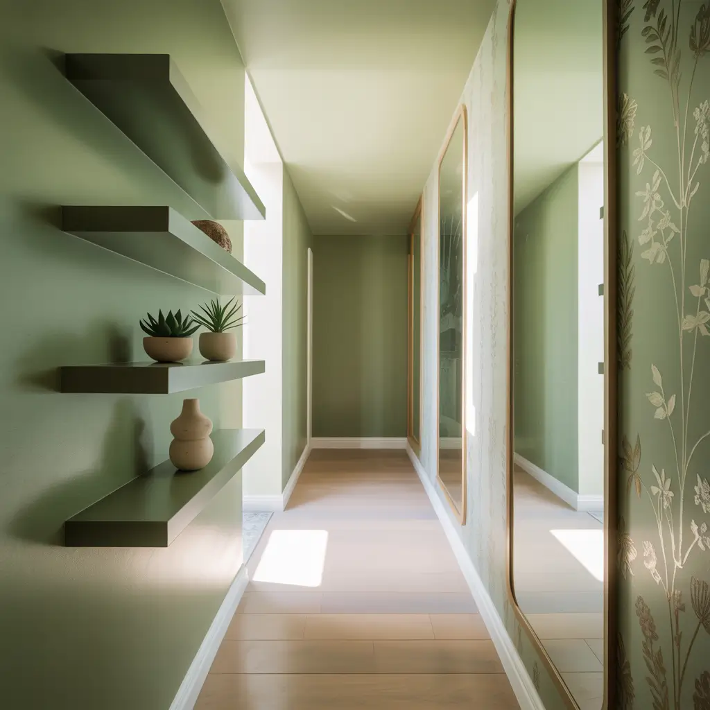 Small Hallway Painted Sage Green for Space Illusion