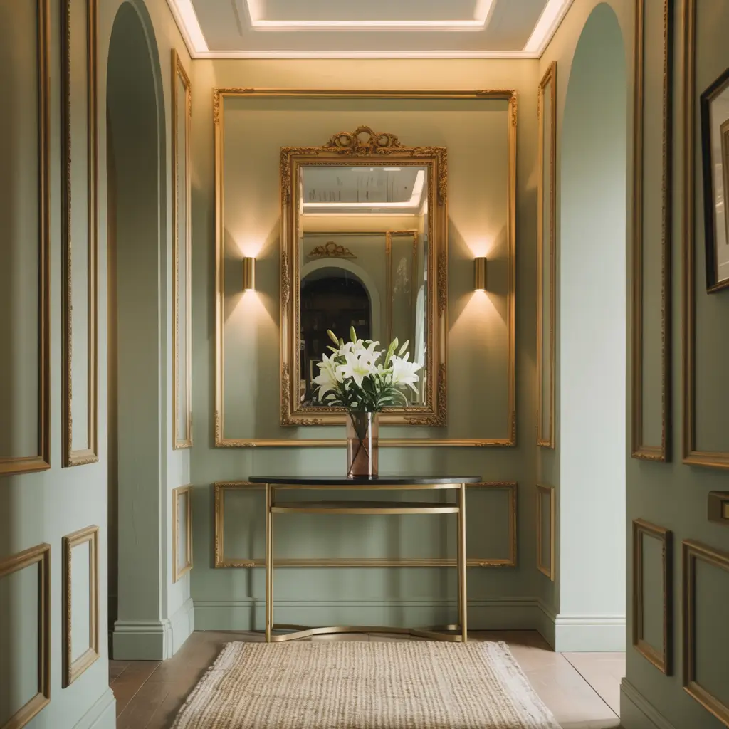 Elegant Sage Green Hallway with Gold Accents