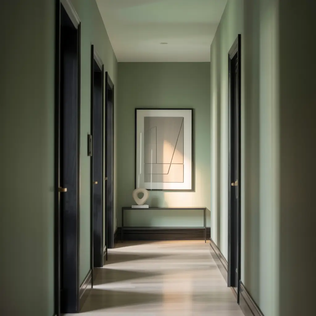 Got a hallway that feels more like a narrow tunnel? Sage green might just be your secret weapon for making it feel bigger.