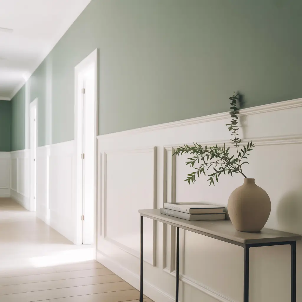 Sage Green and White Two-Tone Hallway Design