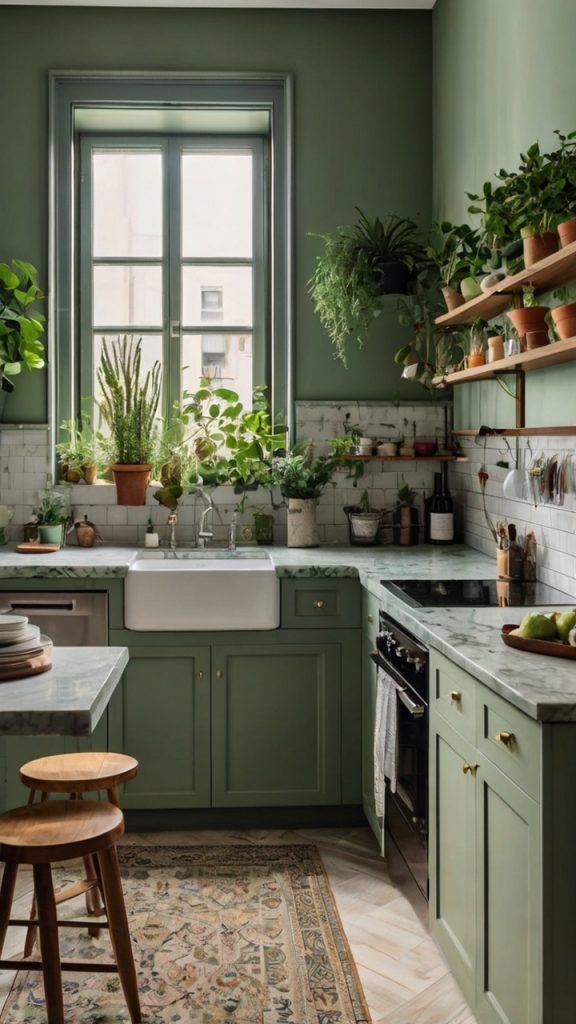 Think your kitchen’s too small for color? Think again. Sage green actually makes small kitchens feel bigger – I’m not even joking. The color has this magical ability to recede visually while still adding personality, which means your tiny kitchen suddenly feels less like a closet and more like an actual room.