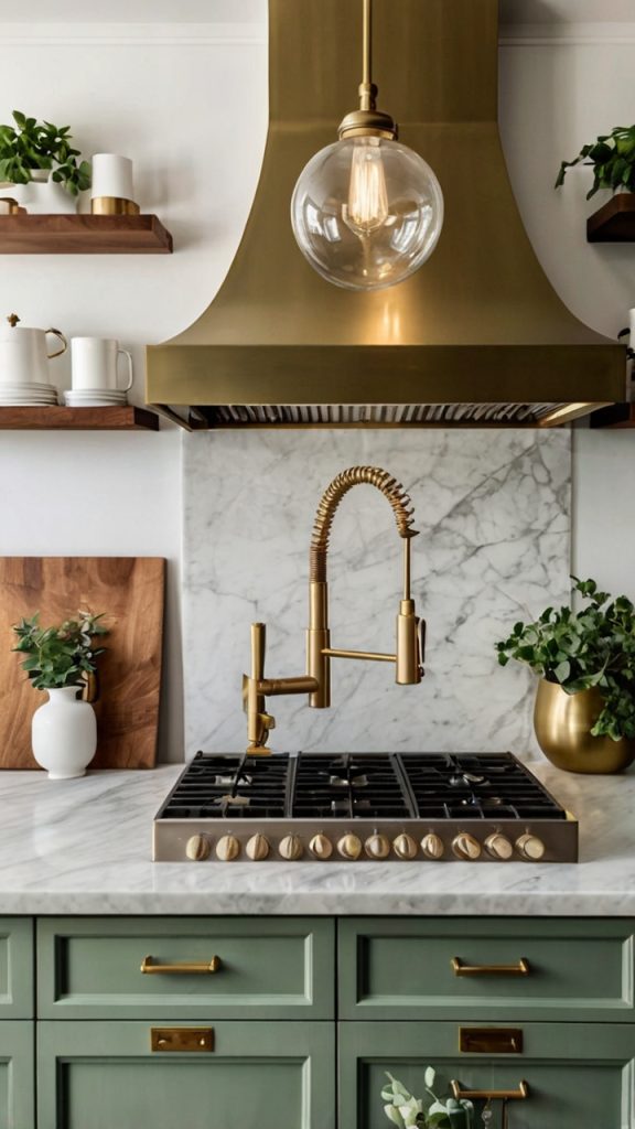 Start with the obvious: cabinet hardware and faucets. But don’t stop there. Consider brass shelf brackets for open shelving, a brass pot rack, or even brass switch plates. The key is consistency – mixing metals can work, but when you’re going for this specific look, commit to the brass.