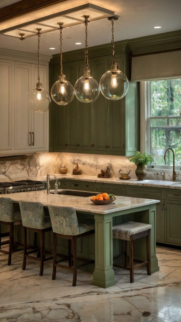 Lighting can make or break your sage green kitchen – trust me on this one. The right lighting brings out the subtle undertones in the paint, while bad lighting can make even the most expensive sage green look like hospital green. Warm white bulbs (2700-3000K) are your friends here.