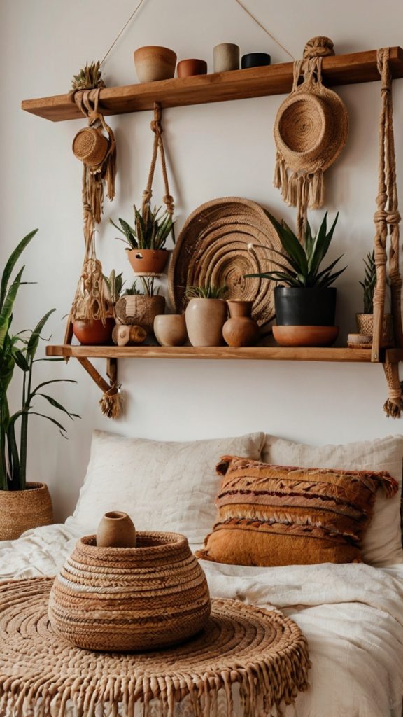 Okay, confession time: I thought macramé was just for grandmas until I actually tried it. Boy, was I wrong! Macramé shelf displays bring this incredible texture and warmth to bedroom walls that regular shelves just can’t match.