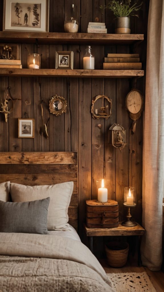 Nothing says “cozy bedroom vibes” quite like rustic wood shelves loaded with vintage treasures. I transformed my guest bedroom with reclaimed barn wood shelves, and everyone who visits asks where I got them. The answer? My neighbor’s old fence. Not kidding.