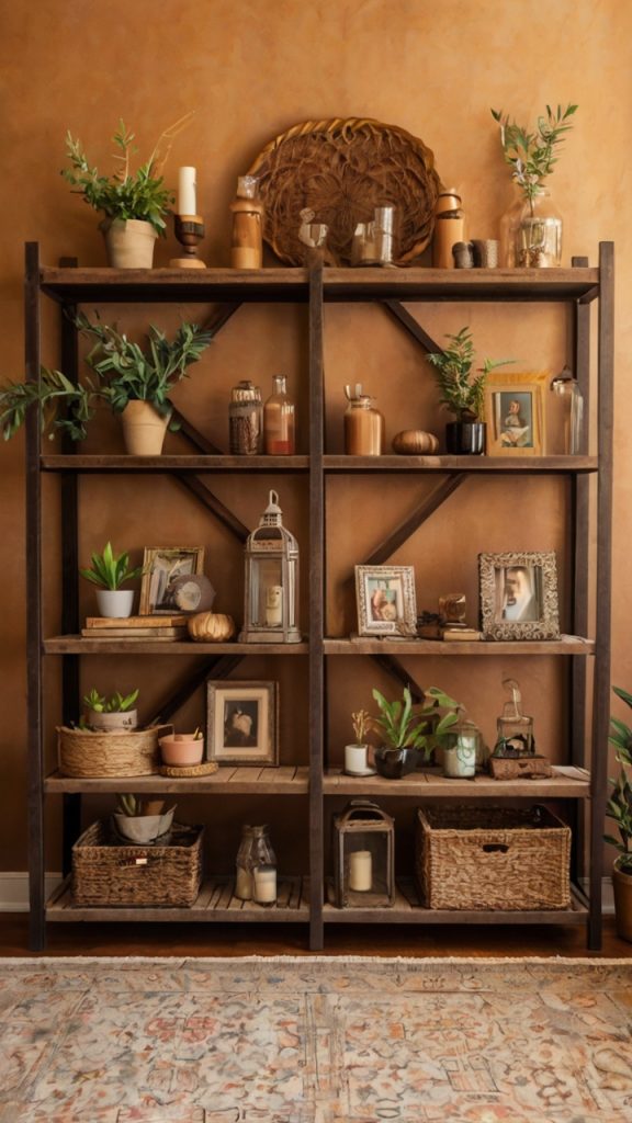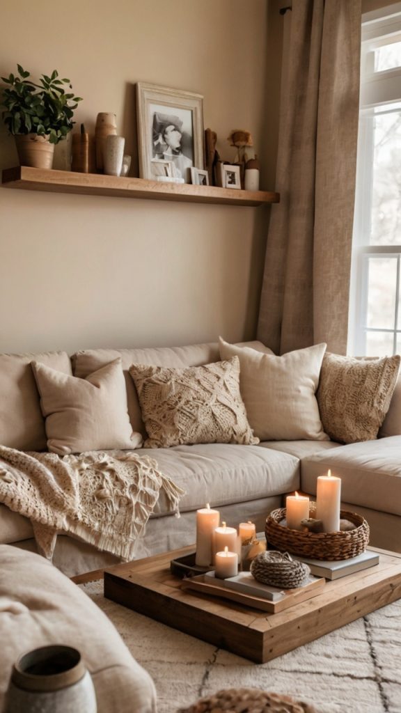 Cozy Neutral Shelf Decor Setup