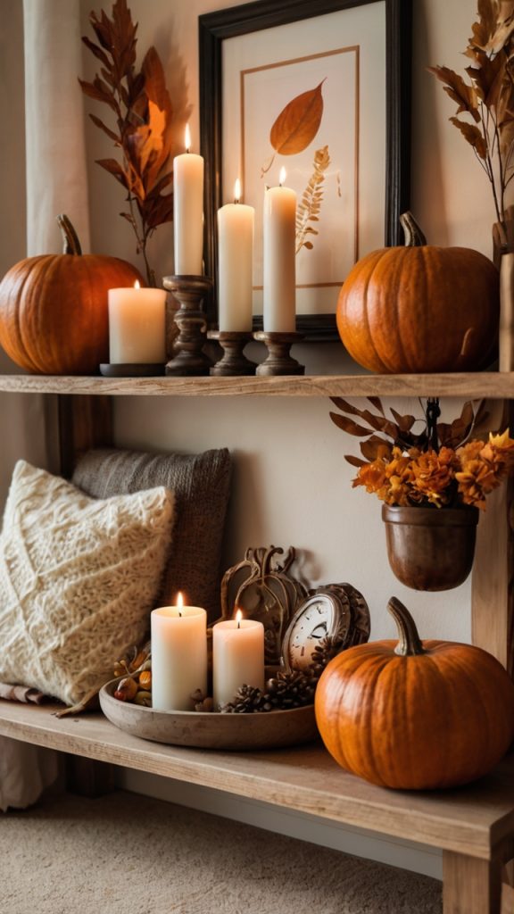 Fall and winter invite coziness. Layer in warm textures like felted wool, chunky knits, or velvet. Deeper colors and metallic accents reflect the season’s mood. Don’t forget lighting – battery-operated fairy lights or LED candles add ambiance without fire hazards.