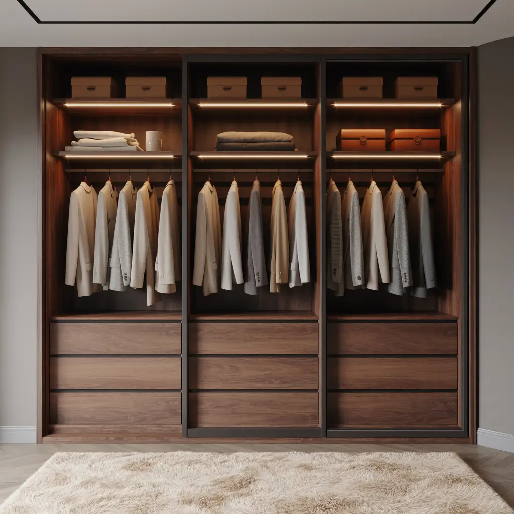 Modern LED systems are incredibly energy-efficient and some even have motion sensors. Door slides open, lights turn on automatically. It’s like having a personal boutique in your bedroom.