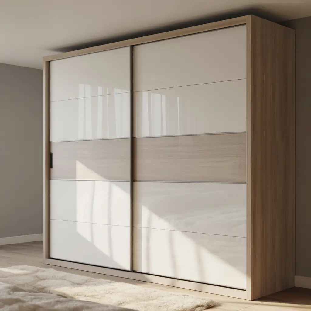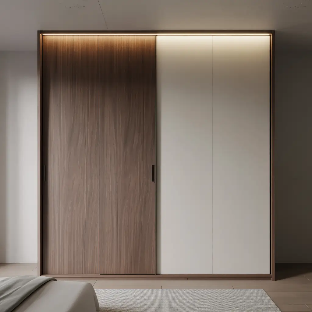 Why settle for one color when you can have two? Two-tone sliding wardrobes add visual interest without overwhelming the space. They’re perfect if you want something unique but not too crazy.