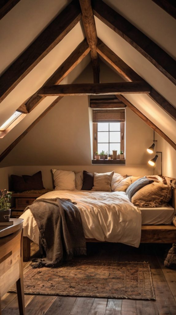 Nothing screams “cozy hideaway” quite like a loft-style attic bedroom. I’m talking about that perfect blend of exposed beams, warm lighting, and textures that make you want to burrow in with a good book. The key here? Embrace those architectural quirks instead of fighting them.