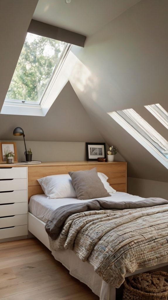 Layout is everything in a small attic bedroom. Get it wrong, and you’re bumping your head every morning. Get it right, and you’ll forget you’re working with limited space.