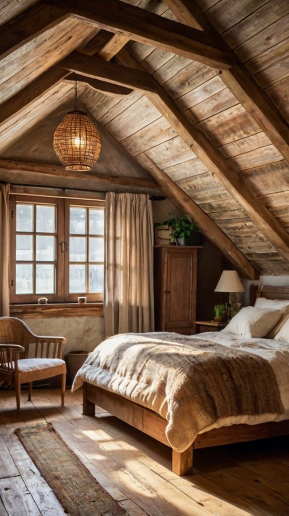 Raw wood is your foundation here. Keep those beams exposed and natural. Add reclaimed wood furniture – the more weathered, the better. I scored an old barn door at a salvage yard and turned it into a headboard. Best $50 I ever spent, IMO.