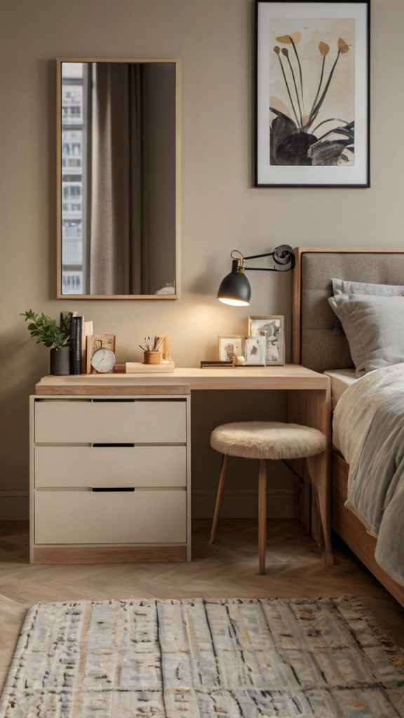 Real talk – furniture that adapts to your needs is clutch in small bedrooms. My folding desk literally disappears into the wall when I’m done working, giving me back precious floor space for yoga or just, you know, walking around 🙂