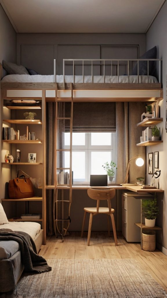 Now we’re talking serious space optimization! Loft beds aren’t just for dorm rooms anymore. They’re actually brilliant for small bedrooms because you basically get two rooms in one.