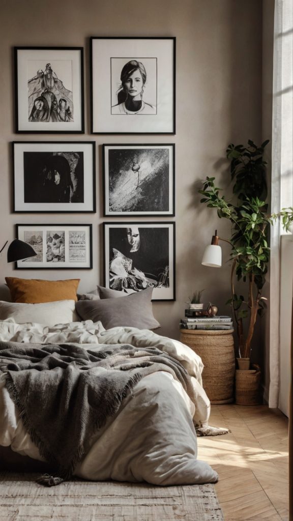 Who needs floor sculptures when you have walls begging for attention? A gallery wall adds personality without sacrificing space. But here’s the thing – in small bedrooms, curation is crucial. Random art everywhere looks messy, not artistic.