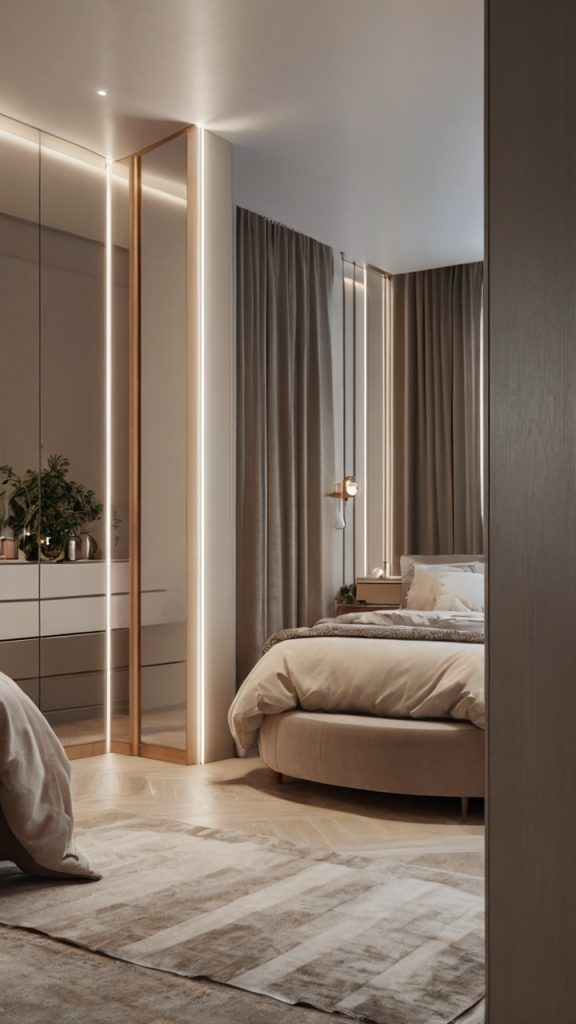 Wireless charging stations built into furniture eliminate cable chaos. Smart mirrors display weather, news, or your calendar while you get ready. The future is here, and it’s perfect for small spaces!