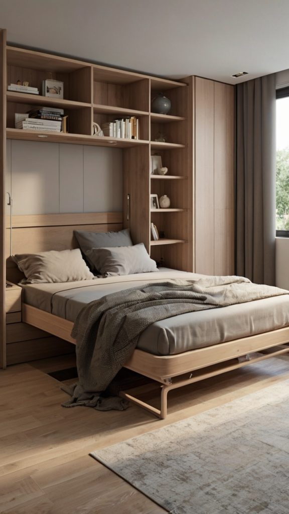 Look for pieces that fold flat against walls or into themselves. Murphy beds might seem extreme, but modern versions are actually pretty sleek. Folding chairs that hang on wall hooks, collapsible nightstands, even fold-down ironing boards that double as mirrors – the options are endless.