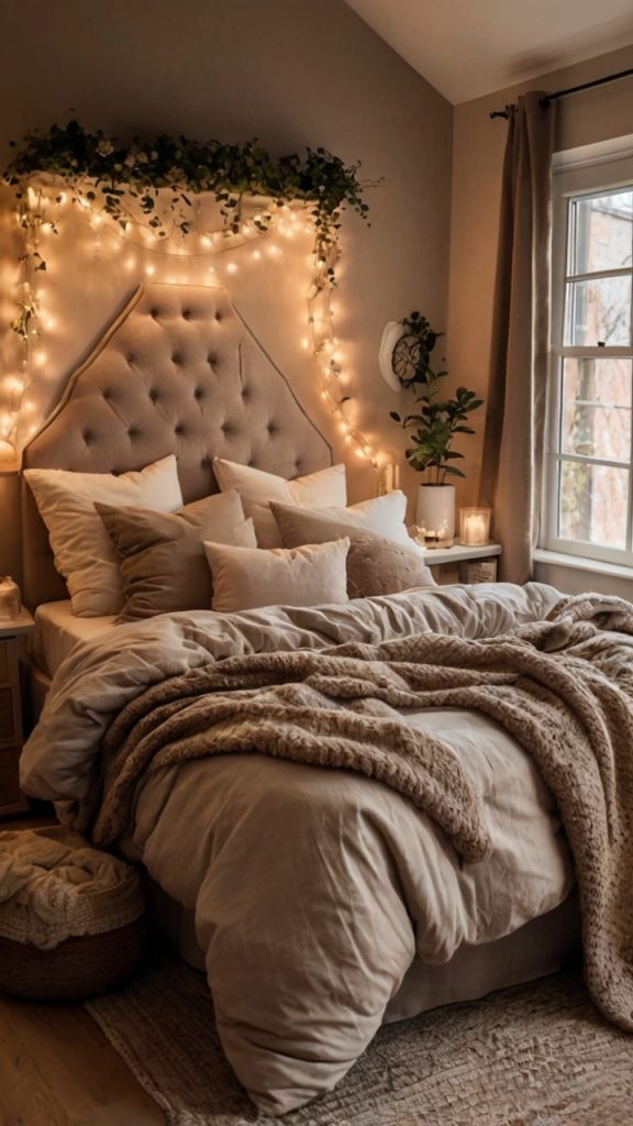 String lights aren’t just for college dorms anymore. Warm Edison bulbs or fairy lights draped along the headboard or ceiling create instant ambiance. Just avoid the super bright ones unless you want your bedroom to look like a used car lot.