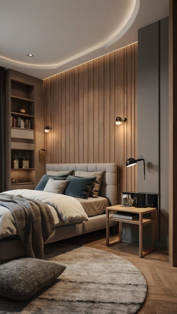 Here’s something nobody tells you: warm whites work better than cool whites in small bedrooms. They reflect light without making the space feel clinical. Pair them with darker accents in your bedding and furniture for that masculine edge.