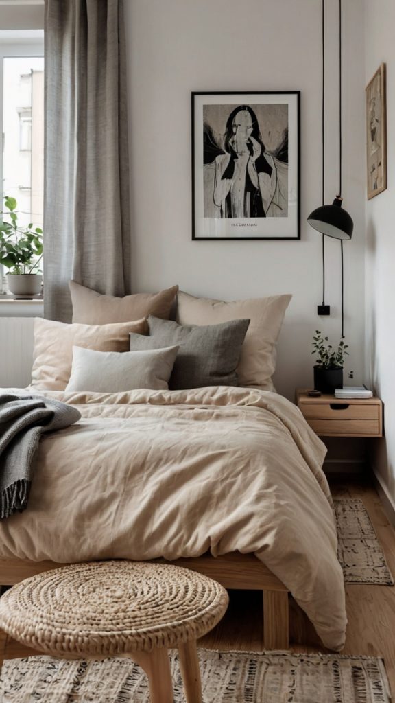 Scandinavian design and small bedrooms? Match made in heaven. This style prioritizes functionality, simplicity, and light – exactly what compact spaces need.