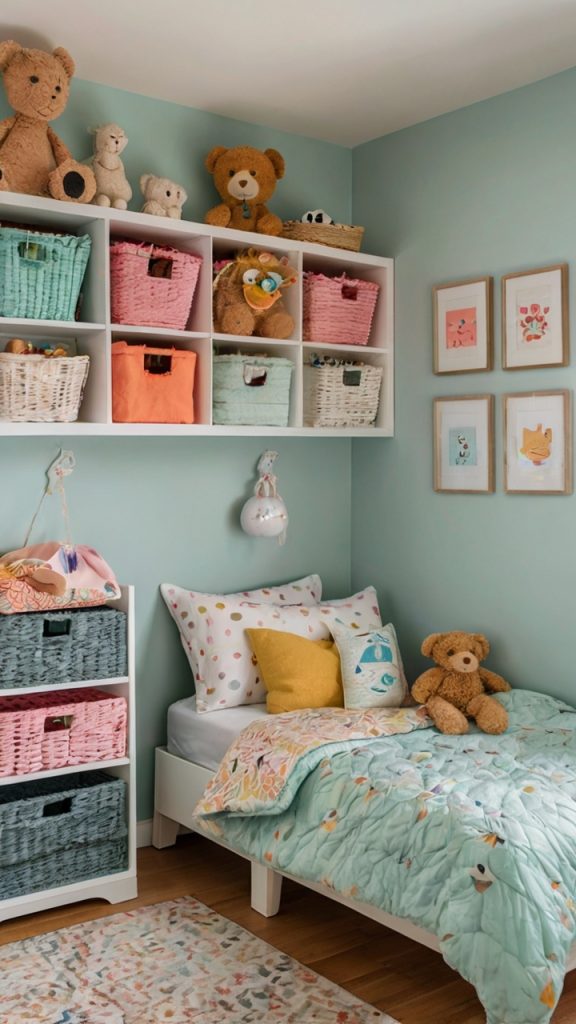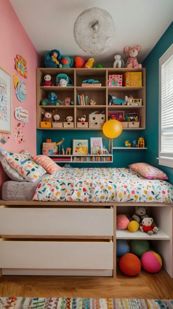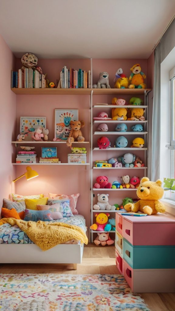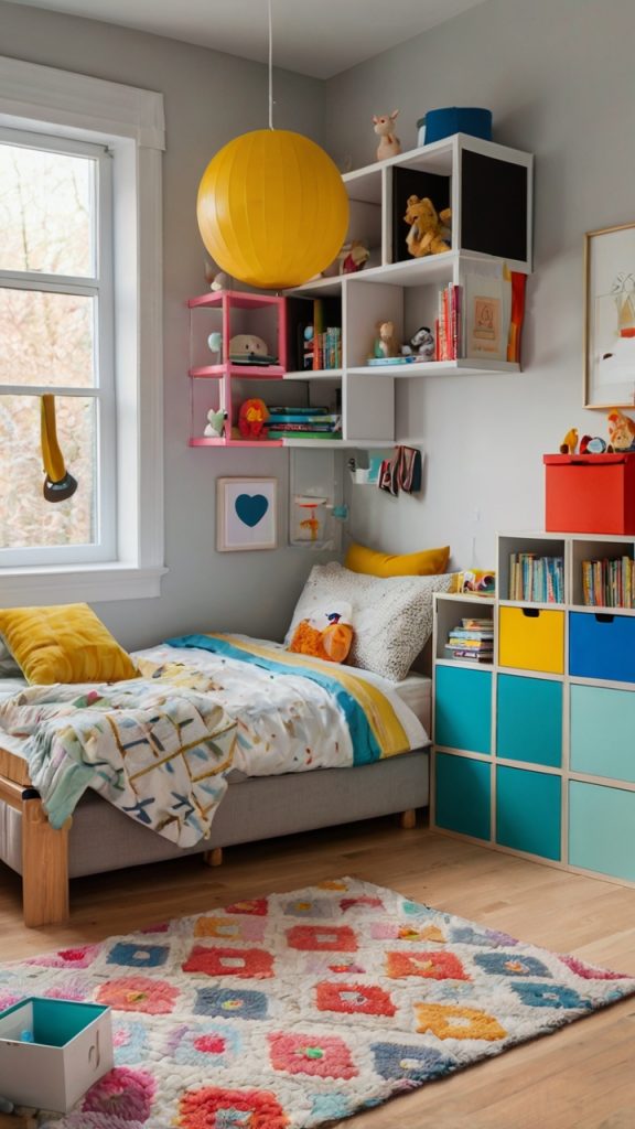 Walls are your best friend in a small room – seriously, they’re like free real estate nobody’s using. I learned this the hard way after tripping over toy bins for months.