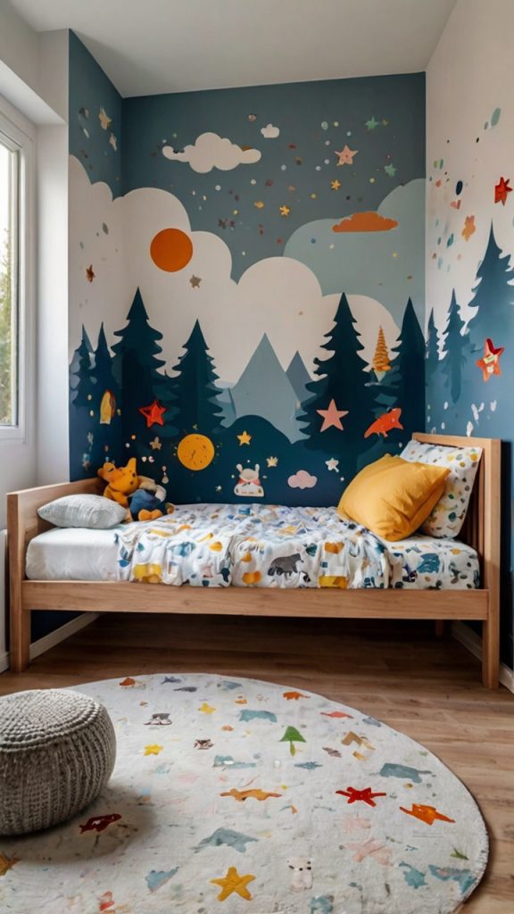 We started with a simple tree decal in the corner, then added birds, clouds, and before I knew it, we had a whole forest scene. The room suddenly had personality without taking up any actual space.