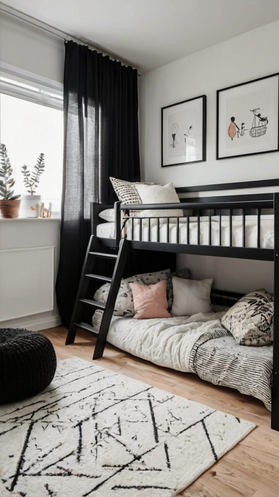 Sharing a small room with a sibling? That’s like expert-level parenting right there. Bunk beds are basically non-negotiable in this scenario, unless you want beds taking up 80% of the floor.