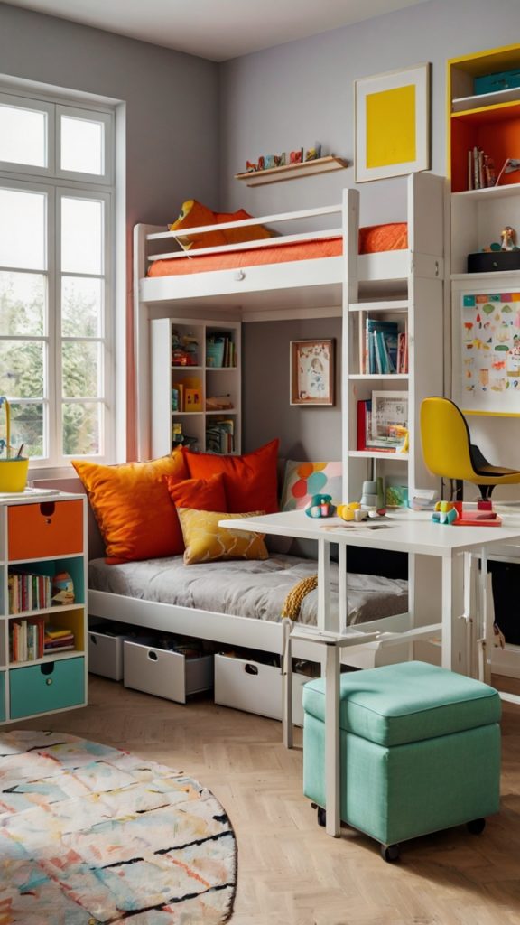 The best part about all these ideas? Most of them grow with your kids. That reading nook becomes a homework spot. The loft bed transitions to teen hangout space. The modular storage adapts to changing interests.