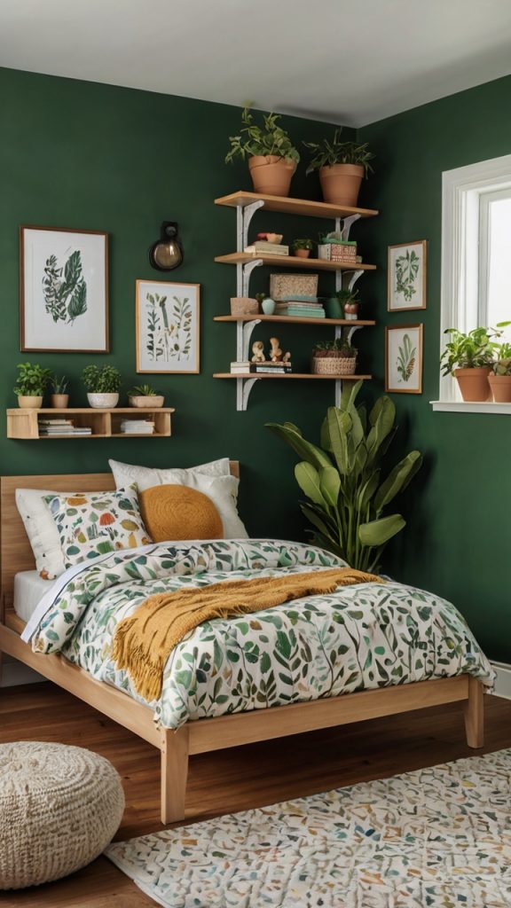 Bringing nature indoors makes small spaces feel fresh and alive. A green accent room doesn’t mean painting everything forest green (though you could). It’s about creating a natural, calming environment.