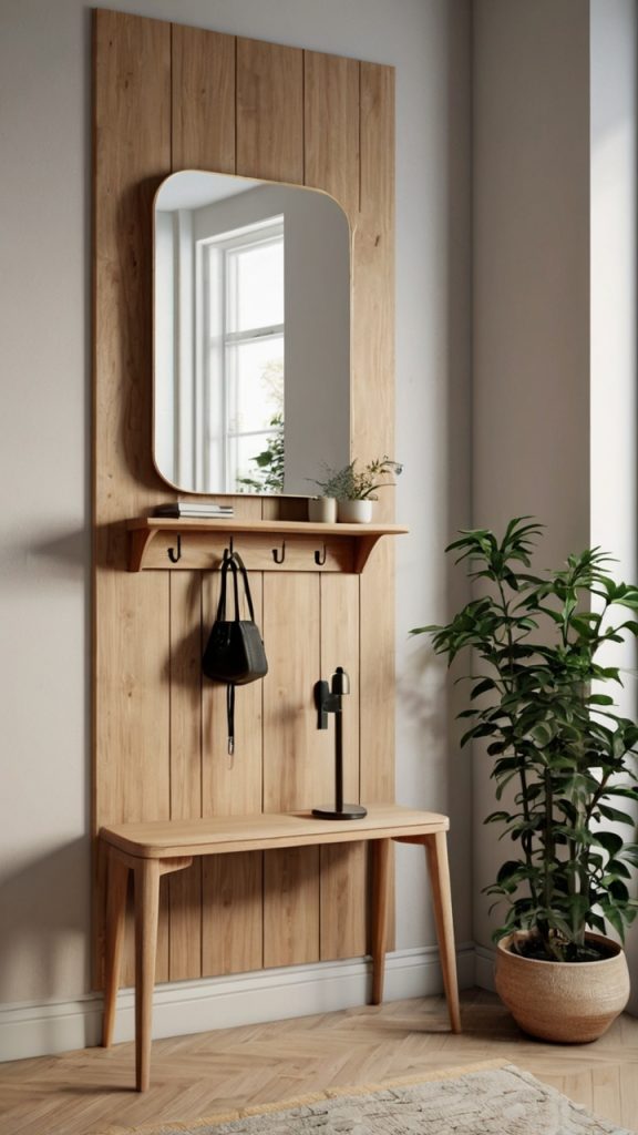 Why have a mirror and separate key hooks when you can combine them? A mirror with integrated hooks or a small shelf gives you that last-minute appearance check while keeping essentials within reach.