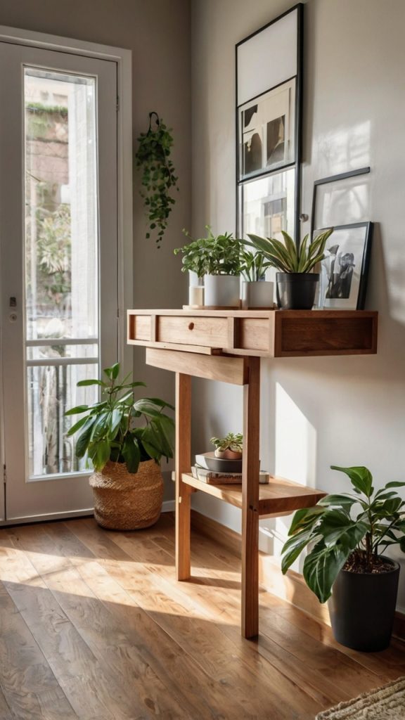 A narrow console table might seem too simple, but choose the right one and it becomes your entryway’s MVP. I’m talking about those genius designs with drawers, lower shelves, and sometimes even built-in seating.