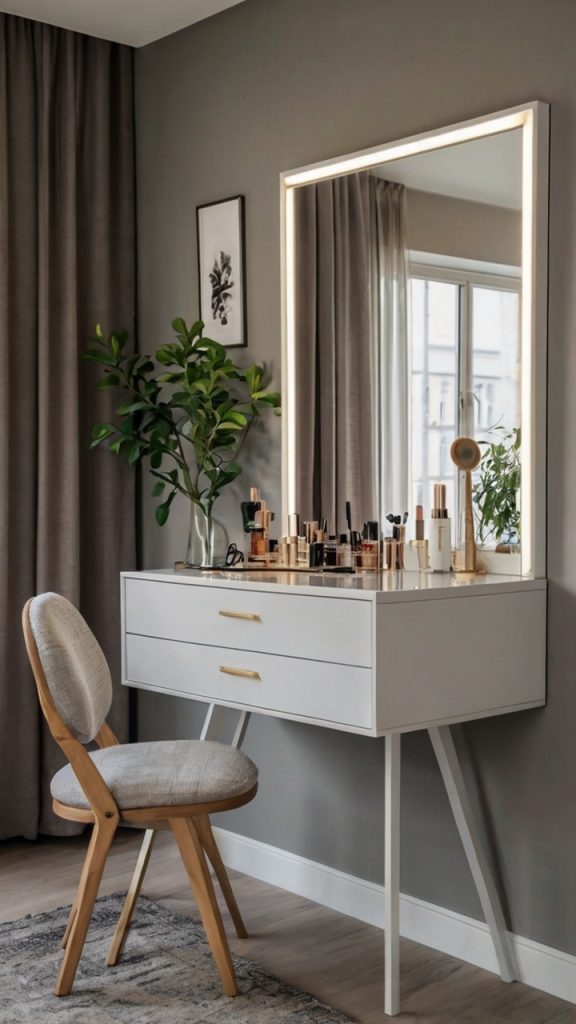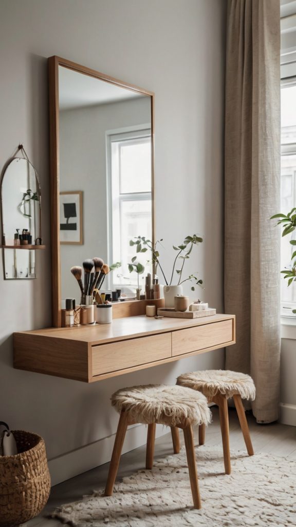Ever wished your furniture could just disappear when you’re not using it? Well, foldable vanity tables basically grant that wish. These clever designs fold flat against the wall or collapse into themselves, giving you a full vanity experience when you need it and zero footprint when you don’t.