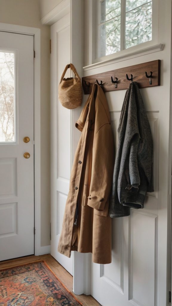 I’ve got two sets on my front door, and they hold everything from bags to umbrellas to that jacket I wear once and don’t want to wash yet (we all have one). The trick is choosing hooks that don’t rattle every time you close the door – nobody needs that kind of drama in their life.