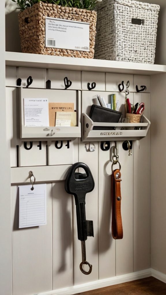 I created a magnetic station using a metal sheet painted to match my wall. Strong magnets hold keys, while magnetic clips grab mail and important papers. No more digging through drawers or checking sixteen different surfaces for your keys.