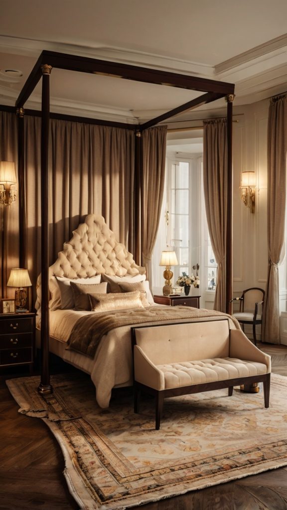 The beauty of four-poster beds lies in their versatility. You can dress them up with flowing fabrics or leave them bare for a more masculine, structured look. Pro tip: if you’re on a budget, you can find stunning reproductions that capture the same grandeur without requiring a second mortgage.