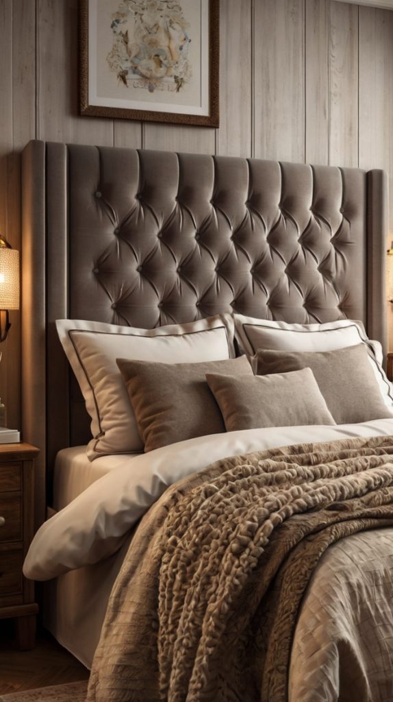 The style options seem endless. Button-tufted creates classic elegance, channel tufting offers art deco glamour, while simple upholstered panels provide understated sophistication. I chose diamond tufting in gray velvet – neutral enough to work with changing decor but luxurious enough to feel special.