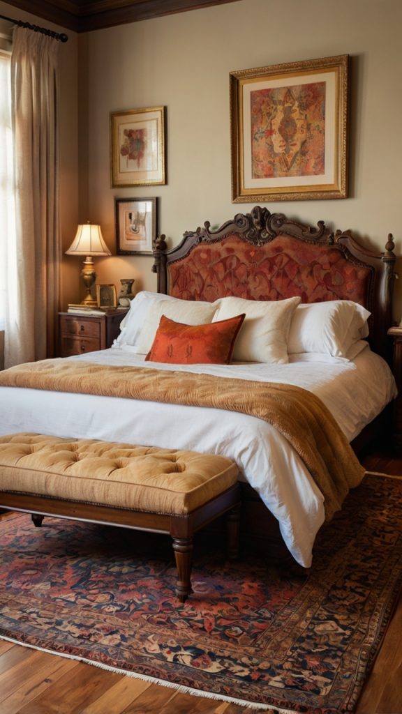 Arranging antique-inspired furniture requires more thought than just pushing everything against the walls. Trust me, I’ve tried that approach, and it makes your bedroom look like a furniture showroom, not a lived-in space.