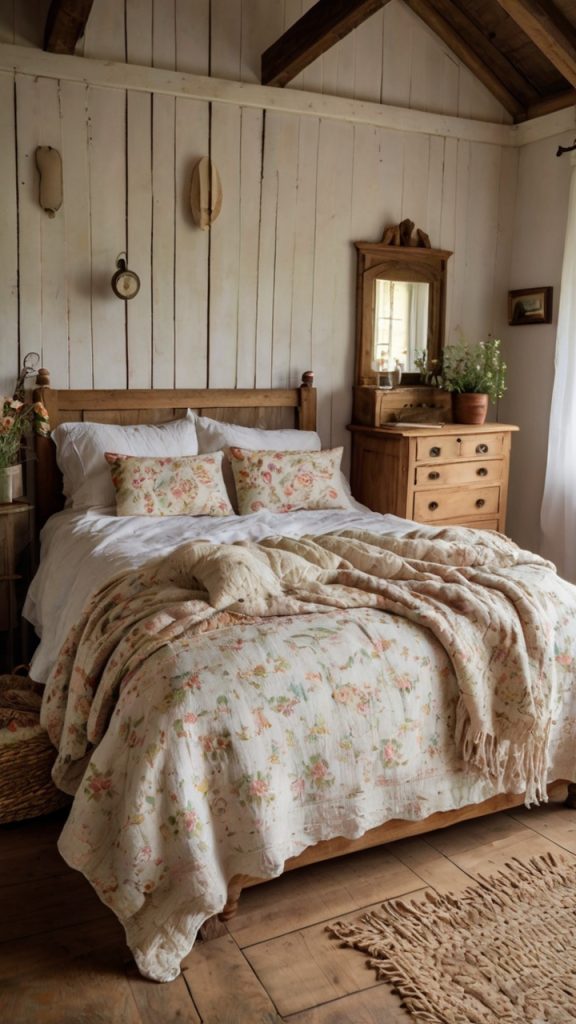 Cottage bedrooms embrace imperfection. That slightly chipped painted dresser? Character. The vintage quilt with a small stain? History. This style gives you permission to mix high and low, new and old, perfect and “perfectly imperfect.”