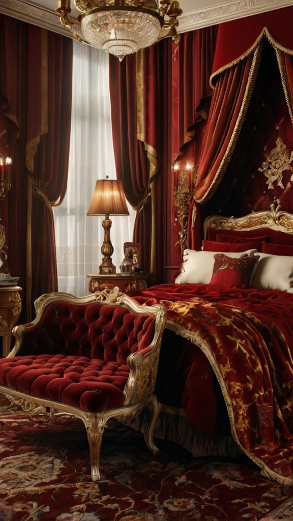 Victorian bedrooms thrive on details. Carved wooden furniture, tufted headboards, and gilded mirrors create that authentic period feel. Don’t forget the importance of symmetry – Victorians loved their matching nightstands and perfectly balanced decor arrangements.